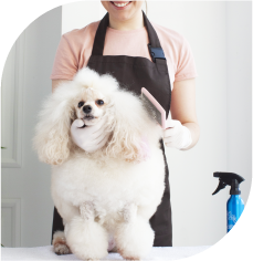 おうちの愛犬と一緒にブラッシングやシャンプーの仕方などグルーミングを学ぶコースです。また、「プロのトリマーになりたいのだけど向いているのかわからない」方にお試し期間として入学してもらえるコースです。